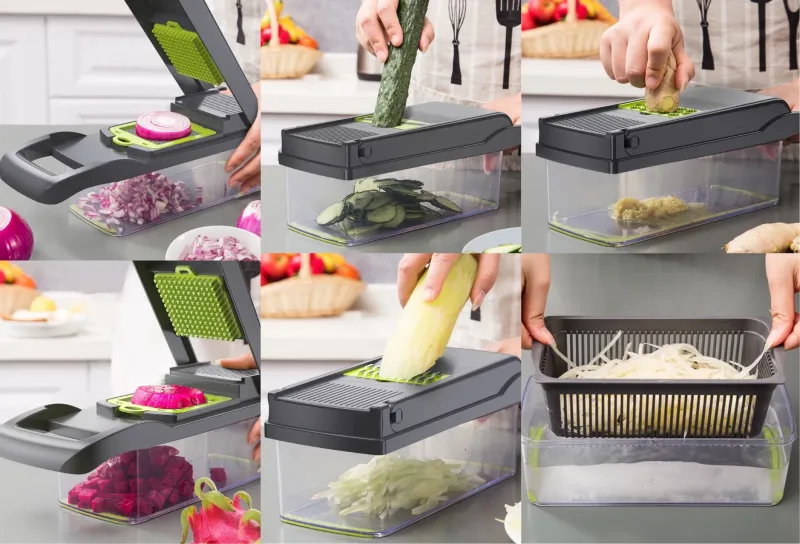 وجدنا لك الحل قطاعة الخضار العجيبة,المساعدة المنزلية المثالية لشهر رمضان المبارك المتكونة من 14 قطعة مختلفة الاستعمال.